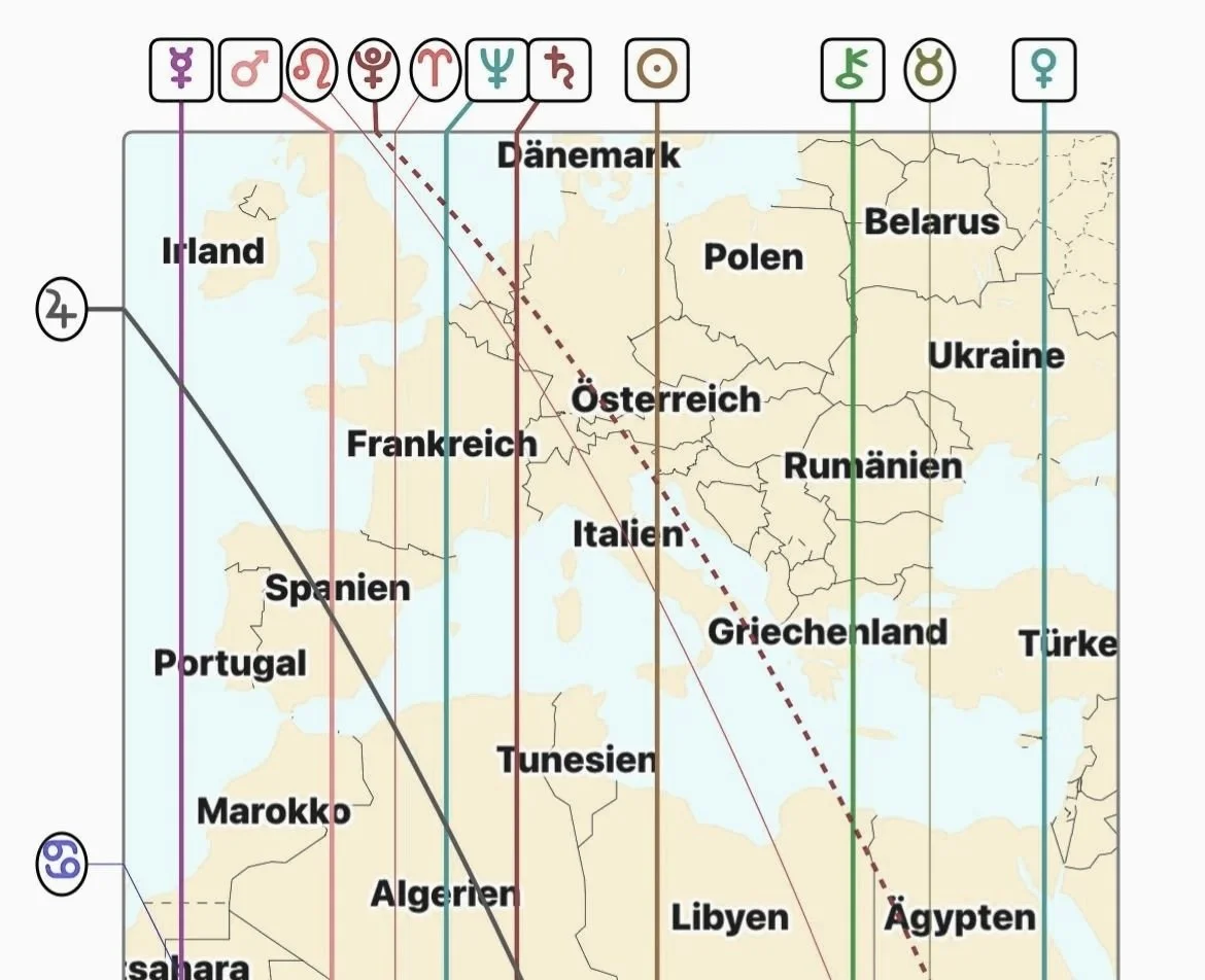 Auf Basis deines Geburtsdatums werden deine astrologischen Konstellationen entschlüsselt und auf die Weltkarte übertragen, um Orte sichtbar zu machen, die dich besonders unterstützen.
